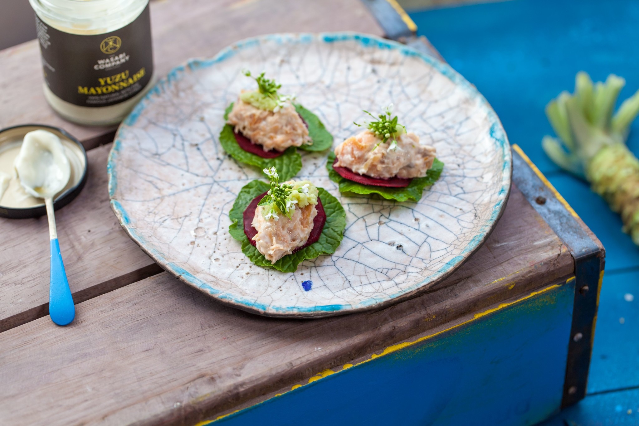 De aromatische en zure smaak van verse yuzu – met tonen van citroen, mandarijn en grapefruit – combineert uitzonderlijk goed met deze volledig natuurlijke mayonaise. Een uitstekende topping voor zalm- of krabhapjes en avocadotoast. Ook heerlijk als basis voor een dip.