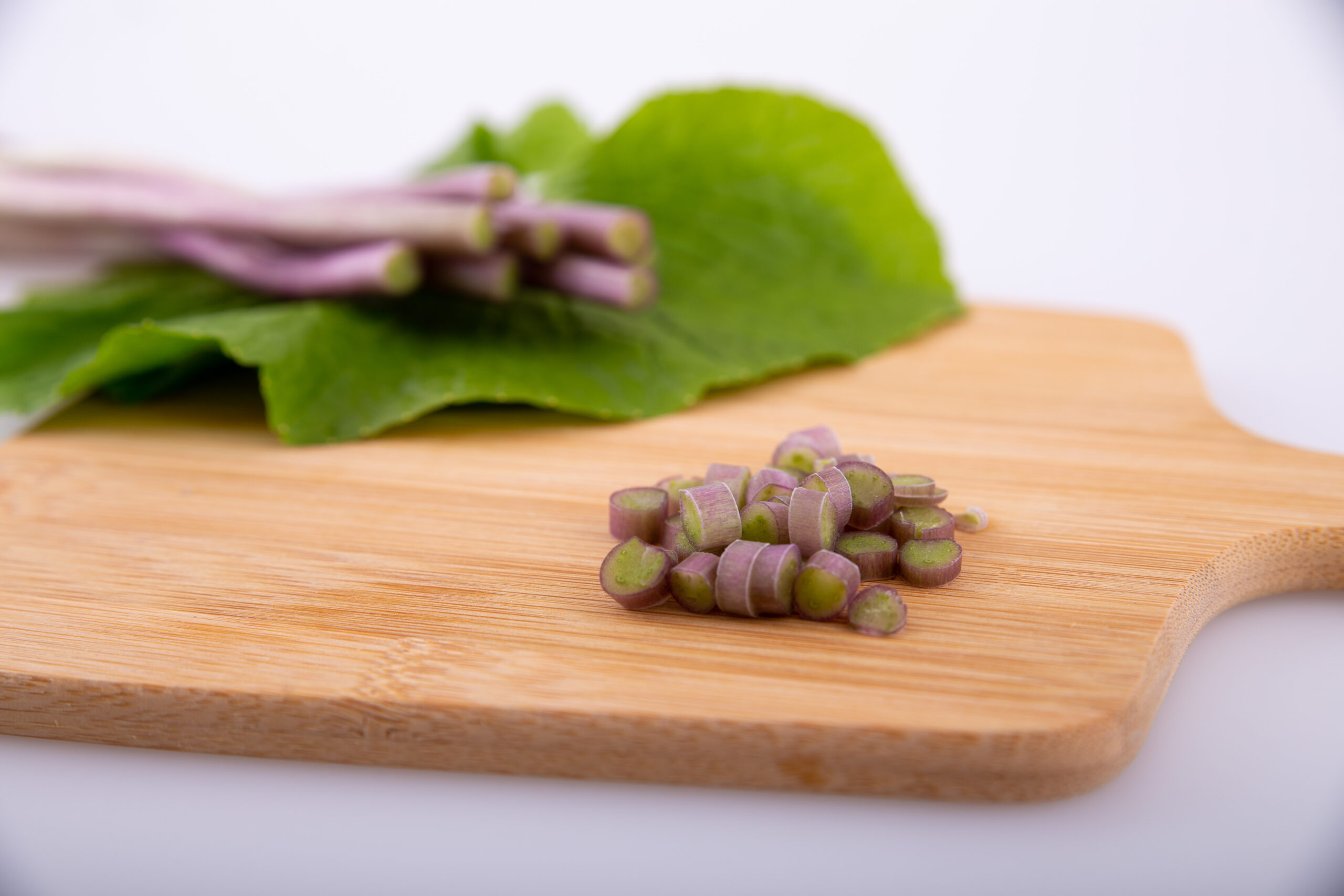 Wasabi-bladstelen zijn de lange, dunne stengels tussen de rhizoom (de ‘wortelstok’ waar wasabipasta van wordt gemaakt) en de bladeren van de wasabi-plant (Wasabia japonica). Van nature groeit deze plant in moerassige gebieden in Japan. Deze verse wasabi-bladstelen worden met zorg geteeld in onze eigen kassen in Nederland, waar wij de ideale omstandigheden creëren. De bladstelen zijn een prachtig voorbeeld van de veelzijdigheid en kwaliteit die de wasabi-plant te bieden heeft.