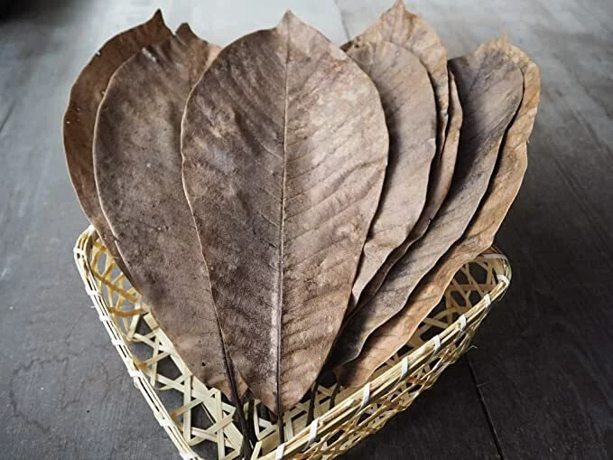 De bladeren worden meestal gedroogd en kunnen voor gebruik in water worden geweekt om ze buigzaam te maken. Ze zijn niet bedoeld om te worden gegeten, maar dienen als een natuurlijke, biologisch afbreekbare kook- en serveerschaal, waardoor gerechten een unieke geur en presentatie krijgen.