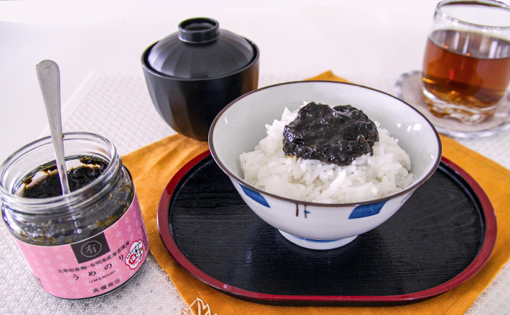 "Umenori" is een "tsukudani van zeewier" gemaakt met kostbare pruimen uit Dazaifu en nori uit de Ariake Zee. De pruimen worden alleen geoogst op beperkte locaties, zoals de ruïnes van het Dazaifu Government Office. Daarnaast wordt alleen de eerste en tweede graad Ariake nori gebruikt, die bekend staat om de beste smaak en een smelt-in-de-mond textuur. Eerst komt de zure smaak van de pruim naar voren, gevolgd door de rijke smaak van de Ariake nori die zich door je mond verspreidt.